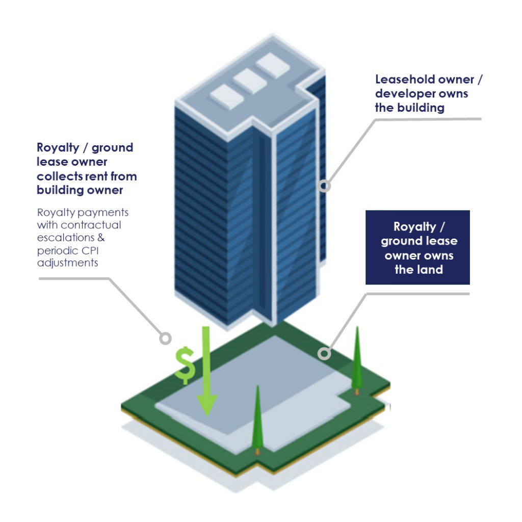 Ground leases and real estate royalties represent one of the most conservative positions in real estate. By owning the land beneath high-quality assets, capital is paid from top-line revenue and sits senior to operating expenses, debt, and equity.